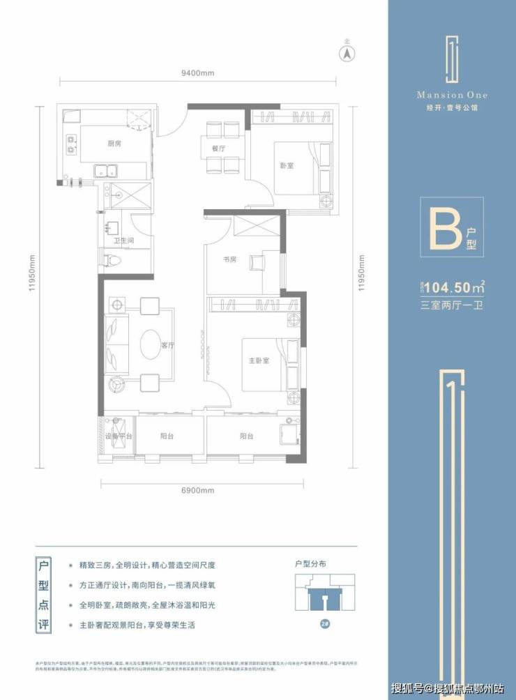 经开·壹号公馆遵循对匠造美好生活的不懈追求,将精工品质的理念,渗入产品的每一个做法、细节、工序之中。在户型设计上,更是充分考虑现代家庭的需求,建筑面积约104㎡经典三房设计,力求空间的最大化利用与自然光的完美引入,让家的每一个角落都充满温暖与明亮。