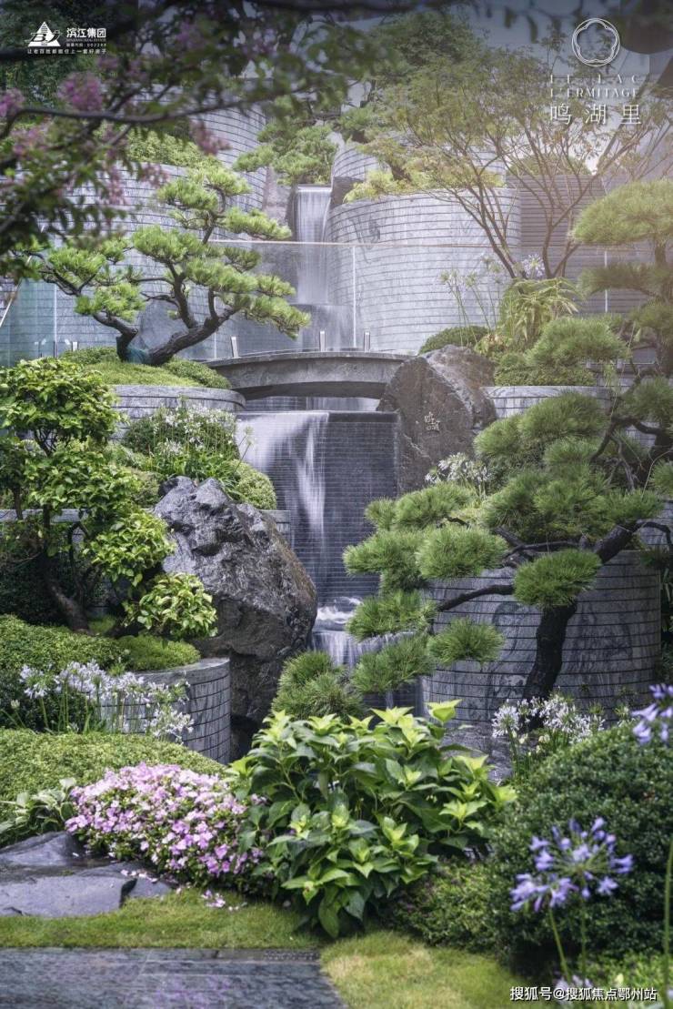 假山与叠石自带高低差,水瀑顺势而下、涓流成溪,高处又有一帘水幕如珠玉落盘,与摇曳在水岸边的百岁赤楠、珍贵铁冬青一并将“湖山”收入园中。
