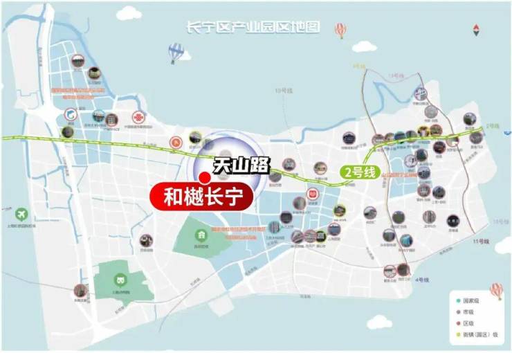 21世纪,伴随着虹桥崛起和2号线的贯通,天山路/2号线双命脉重合,东段承载中山公园CBD商务和天山商圈商业功能,中段聚焦文教居住,西段对接虹桥临空经济区,天山路成为了长宁新时代的中轴线和发展重点。