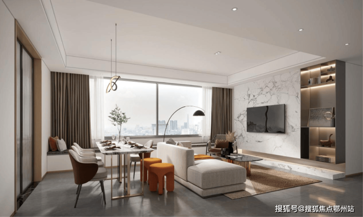 餐客厅一体的“家庭公区”,实现全家庭的功能共享,丰富家庭交流空间,情感无界,提升全家幸福感; 约6.4米宽屏双联阳台,横跨客厅与次卧,为家人增添更多明媚阳光和心动风景,在阳台置放一把躺椅、一本书、一个跑步机,在自然风光中静享岁月如歌。