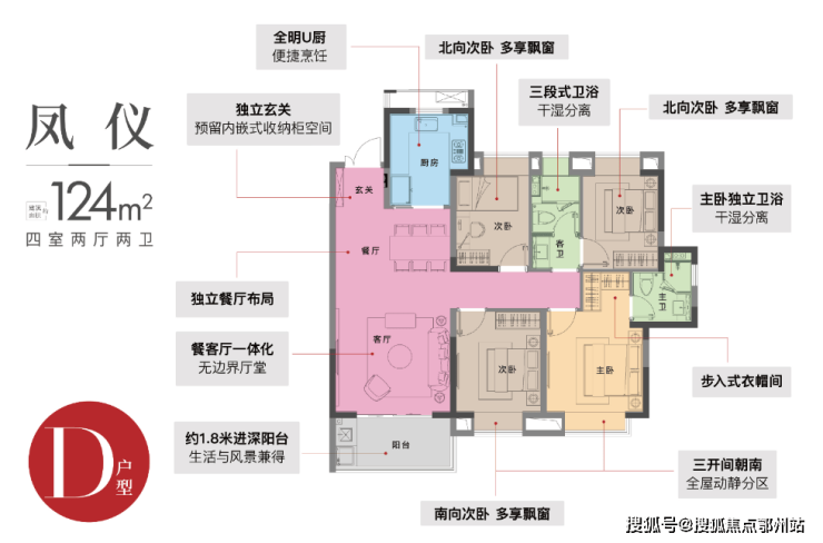 D户型 | 4室2厅2卫 | 建筑面积约124㎡