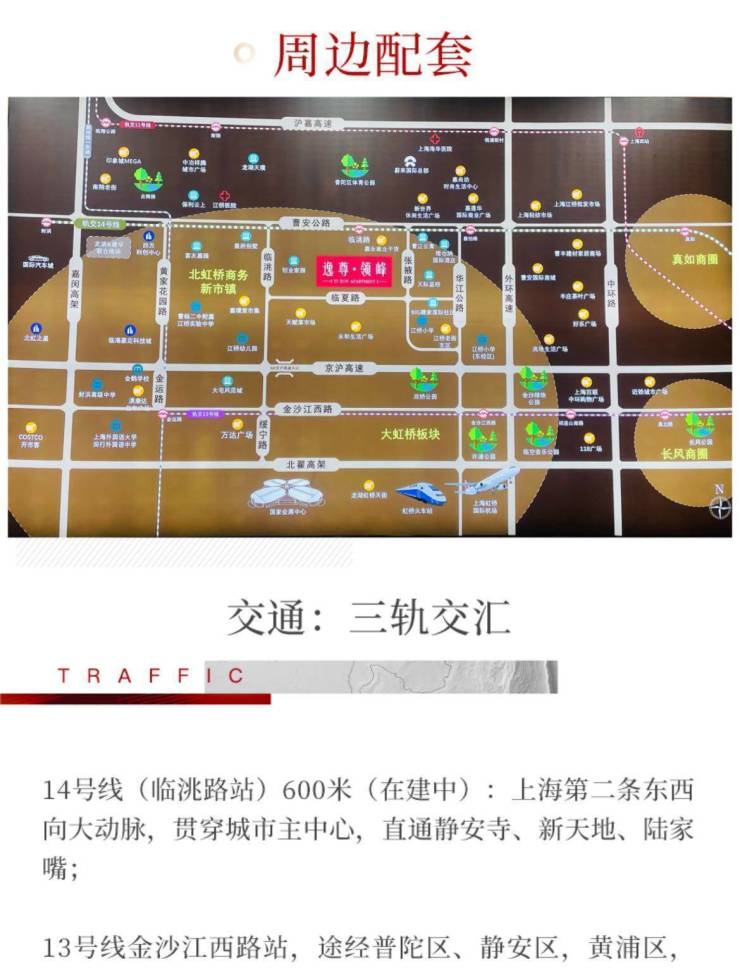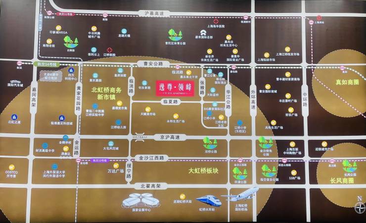 纵享14号线及嘉闵线黄金十字枢纽价值引擎。14号线(在建中)串联真如、静安寺、新天地、人民广场、陆家嘴、金桥、虹桥7大市级核心商圈,
