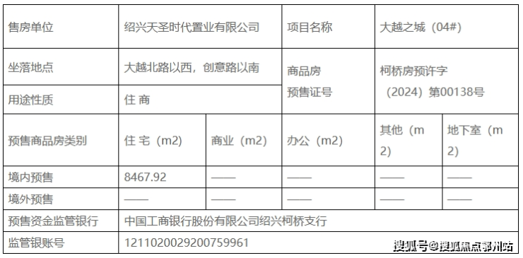 柯桥区人民政府网站公布了 大越之城04#的预售许可公告。