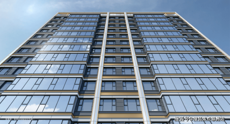 取色琥珀之金、鎏金之橙、青云之灰、珍珠之蓝等地标审美,铝板和low-E玻璃结合立面,造型取自江南粉墙黛瓦,与海派记忆石库门相结合,叠加毫米级金属铝板线脚,打造现代简约的钻感立面,凸显项目的尊贵感和品质感。