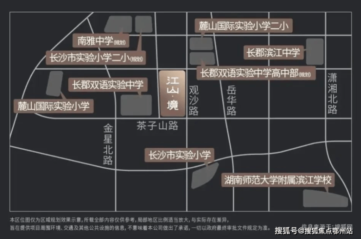政教高地,江山境周边荟萃一线学府资源: 长郡双语实验中学、长郡双语高中(规划中)、 观沙岭南雅中学(规划中);