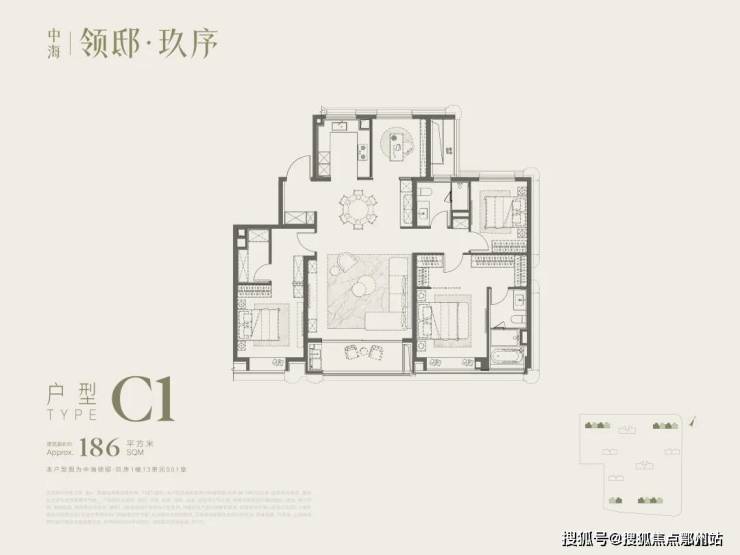 186㎡双卧套房上演全新空间哲学,该户型巧妙地在面积分配上做出了革新,摒弃了传统一味追求宽敞阳台与客厅的做法,转而将这份奢侈赋予了两个南向的卧室套房。