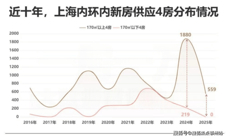 我们以170㎡为界,梳理了近十年内环内四房户型的供应数据,结果也不意外: