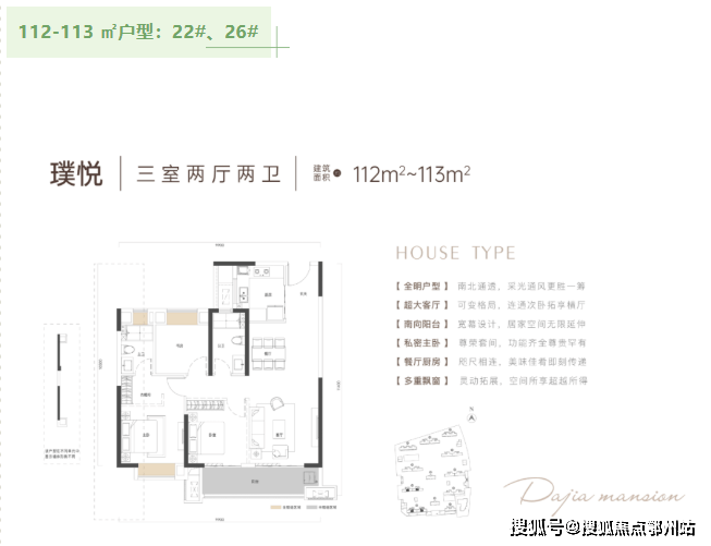 三开间朝南,南向面宽高达11.2米;超大客厅,LDBK一体化设计。双联大阳台+多飘窗,更多可拓空间,更具舒适度。