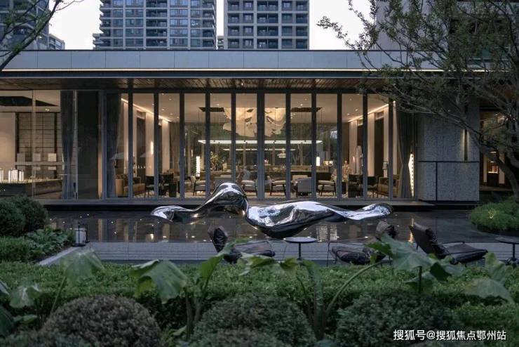 在建筑上,强调对称,突出轴线,充分传达了建筑自然、挺拔的气质。以极简的形态、“消隐”的立面设计,再配以整体平和舒缓、自然雅致的色调,呈现出不同于传统建筑的轻盈、通透质感,展现对美学的高度追求。外立面采用大面积玻璃镶嵌金属线条等现代元素,整体为银灰色系,有强烈的对称和秩序感,高级感拉满。