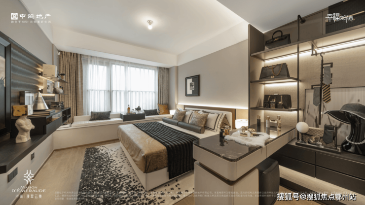 全屋约14.6米大面宽的尺度,让三个卧室都能够直面南向采光,实现阳光平权。主卧是豪华套房,除了飘窗、独卫外,由于空间够大,不论是衣帽间的梳妆打扮,临时办公等,也都能在主卧空间内实现。