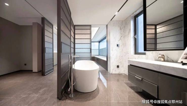 主卫不同于以往,采用了 三分离的设计 ,另外还带有浴缸、双台盆,并且有完整的洄游动线,洗完澡后可以直接推开南面的移门。