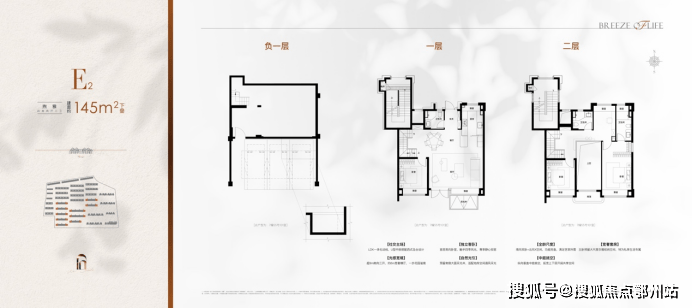 建面约145㎡精奢下叠,首层超9m南向三开的宽阔尺度,搭配以自然为背景的天地庭院,便让整层公区的视野更开阔;约6m宽奢横厅搭配约6m中庭挑空