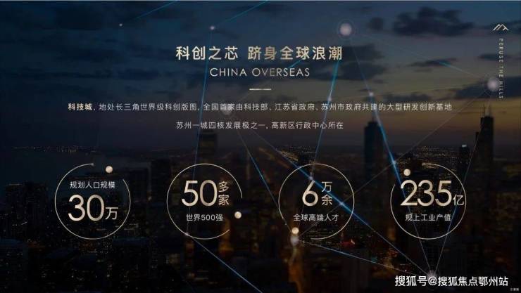 苏州处于产业转型期,从制造业往高端制造、科技创新智慧产业、金融方向转型升级,而科技城就是苏州科技创新的发展级核,金融小镇是科技城科技创新的桥头堡。我们项目就是位于科技城南,金融小镇最核心的生态居住区域。