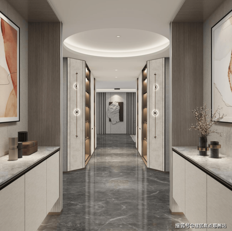 进门是仪式感的长廊,这种设计在无锡市面上不算常见。 初进门,两侧配以玄关柜,再往里走是摆放主人藏品的过厅,敞阔的空间可以用来“情怀”。
