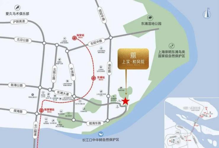 反观项目的位置,向北驾驶约9公里,即可到达东滩湿地公园与崇明东滩鸟类国家级自然保护区,向西5公里可达中华鲟自然保护区,这些优质的生态资源尽在掌握之中!