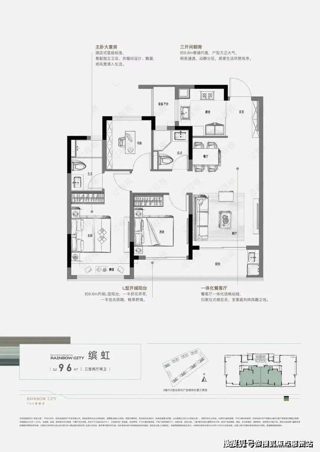 金帝·虹缤之都建面约96㎡户型图