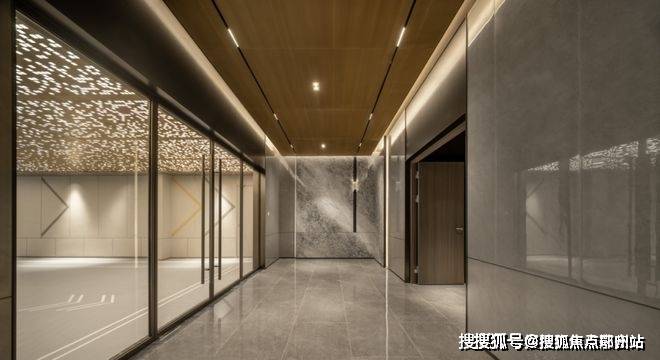 从小区入户处采用灯光设计、美学装置,到地下门厅也设置了香槟金吊顶、仿玉石陶板,高品质材质打造的氛围和质感,让业主每次归家都像是进入星级度假酒店;