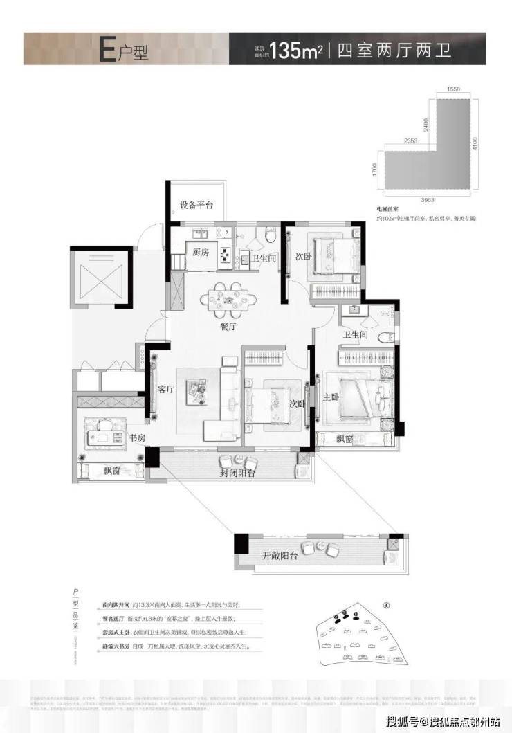 · 建面约141㎡四房 :约13.3米南向面宽+双套房设计,宽奢生活一步到位。