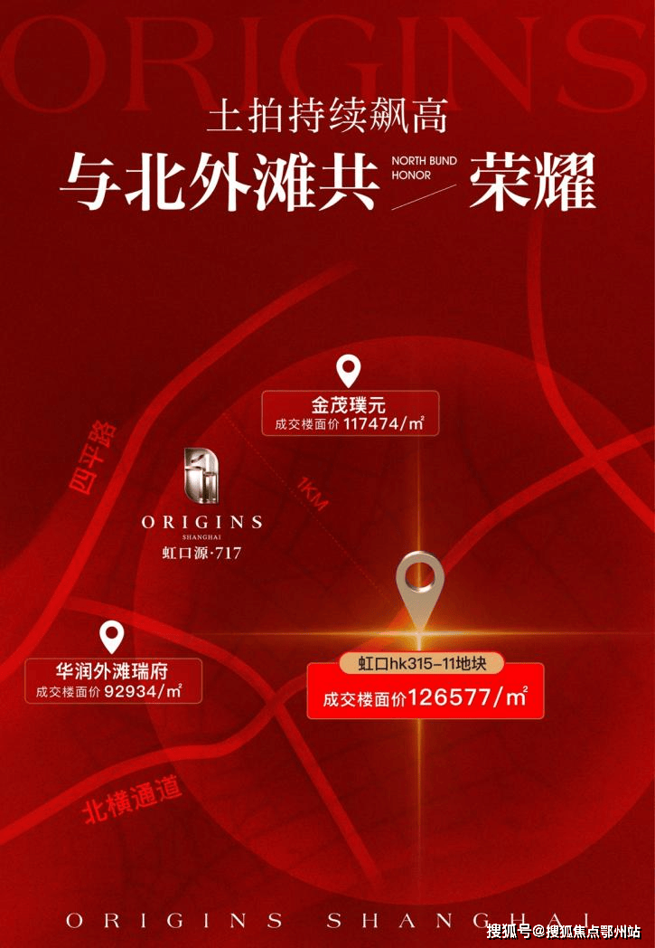 回顾北外滩土拍史,板块地价的跳涨绝非一时喧嚣,而是一步一个脚印,走出了一条漂亮的攀升曲线。2024年11月,华润置地51.36亿拿下北外滩新地块,楼面价92934元/㎡,溢价率11.97%。四个月后,金茂&庆隆以89.64亿元摘得新地,溢价率冲至38.2%,楼面价高达117474元/㎡。再到本次土拍再破纪录的126577元/㎡,每一次落槌,都是对北外滩价值爆发的坚定投票。如今虹口内环再添“地王”新丁,为本就热势难挡的“四平路三兄弟”再加一把“火”,豪宅扎堆,成为上海置业圈内新的热议话题。