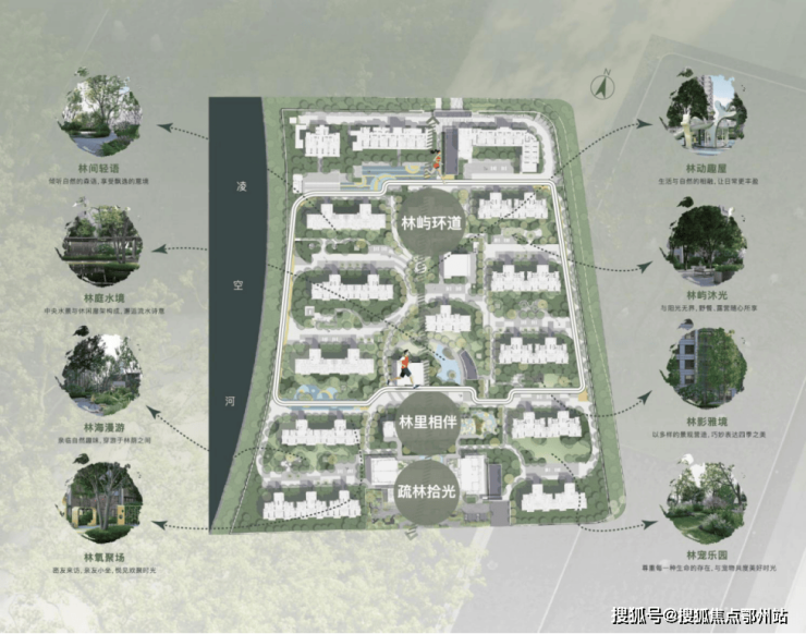 疏林时光,自然都市风尚花园丨林里相伴,社区邻里互动中心丨林庭水境,社交生活休闲会客丨林屿环道,社区健康生活跑道