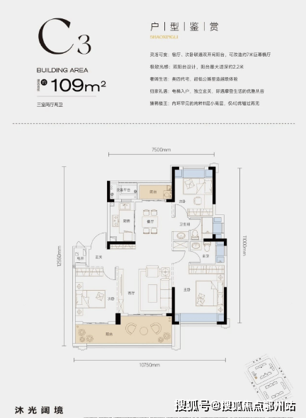 独立玄关入户,私密性与仪式感十足。三开间面宽可达约10.75m,1厅2卧直面阳光,采光性和通透度都非常优越;双阳台+四飘窗设计,不仅空间尺度更大,还实现了板式通风对流布局让空间变得舒适、自在;阳台最大进深达到约2.2m,承载了诗意生活的所有想象。