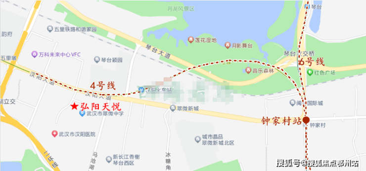 地铁与公交:项目距离4号线最近,与五里墩站和汉阳火车站站都差不多400多米的距离,步行比较近,4号线可在钟家村站与6号线换乘,距离项目也不远。