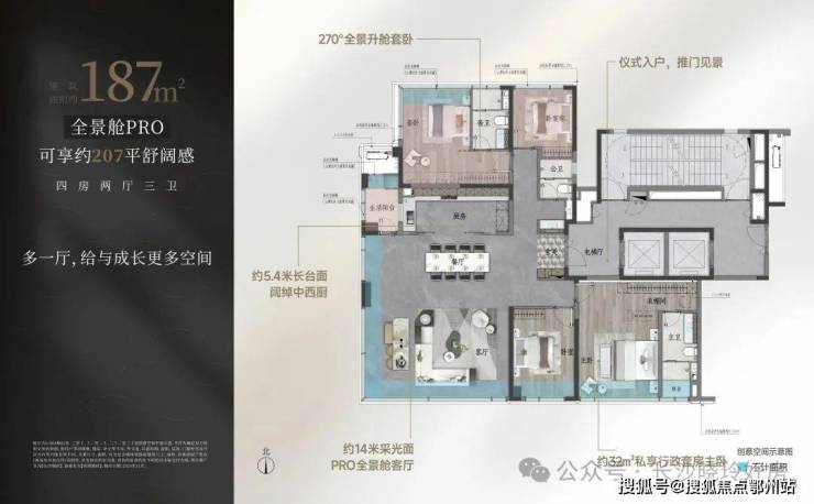 【建面约187㎡端厅户型图】建面约187㎡可享207㎡舒阔感