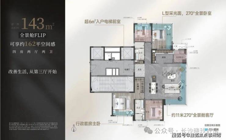 【建面约143㎡端厅户型图】建面约143㎡可享162㎡空间感