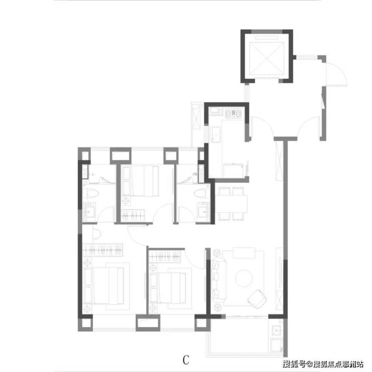 C户型 | 3室2厅2卫 | 建筑面积约98㎡