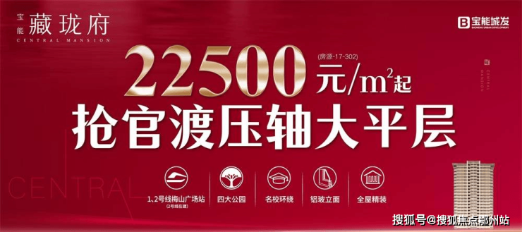 越城宝能藏珑主推建面约96-141㎡精装高层,成交价约2.1万/㎡。坐拥地铁旁双水岸生态、城市医养高地及鼎级教育配套,详情请联系售楼处咨询。
