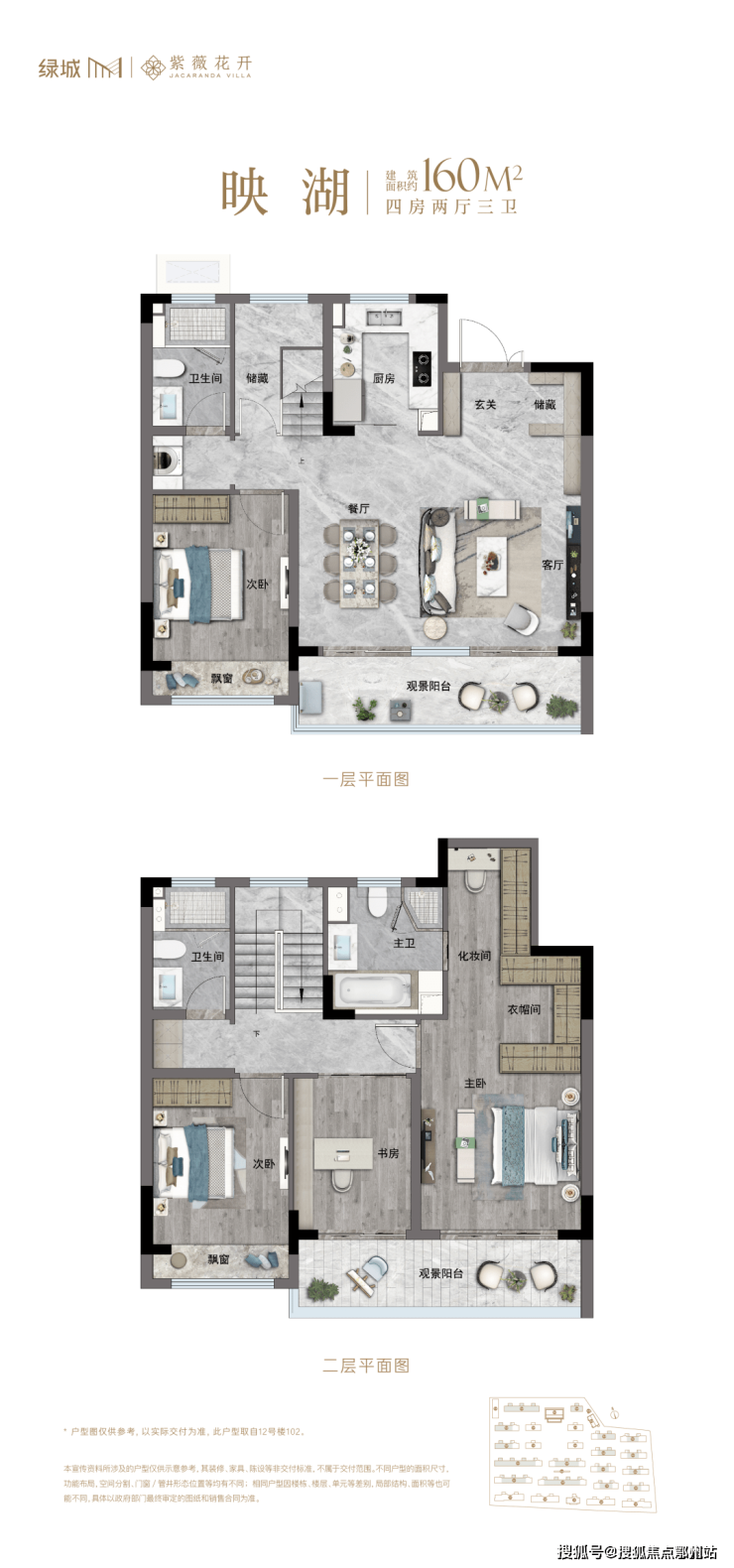 主力户型为 160㎡、180㎡、220㎡,均为2层叠墅。