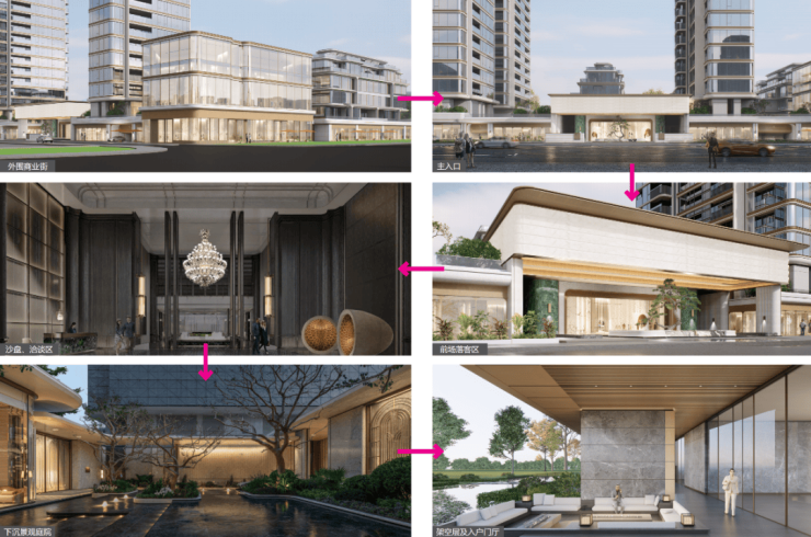 项目外立面为全玻璃+石材金属类幕墙,预计打造全域抬板,全架空层,半地下车库,并配置空中园区;社区内部打造泛会所,为未来业主提供丰富充盈的业余休闲生活。
