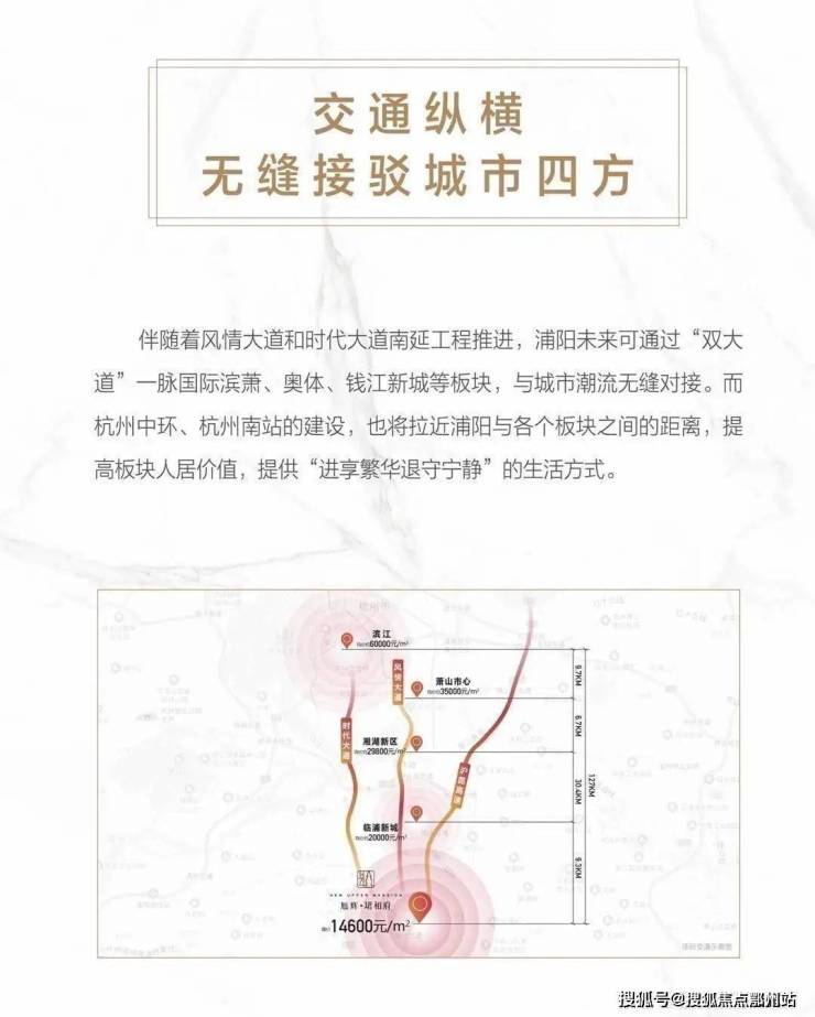 ①时代大道和风情大道南延线直达浦阳,开通后仅半小时左右融入滨江萧山和奥体等整个城南;