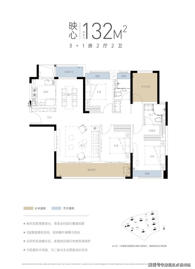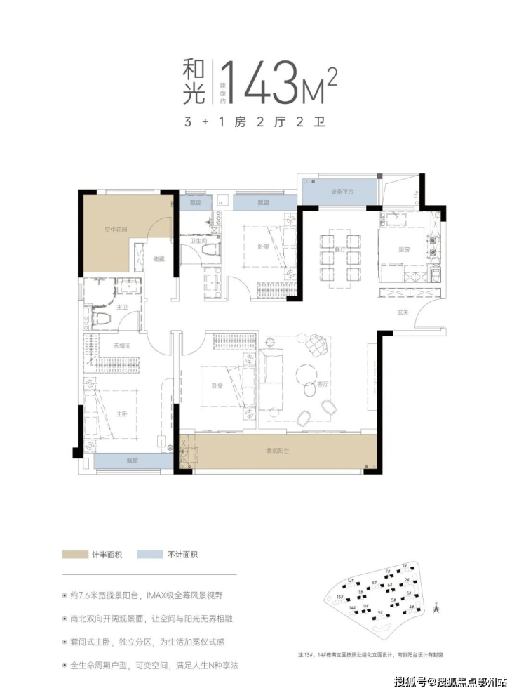建面约132-143㎡3+1房——南北通透布局,南向景观阳台约7.4m(建面约132㎡户型)、约7.65m(建面约143㎡户型),即满足从容会客,亦承载家庭逸趣,约3.8㎡独立玄关入户,扩容收纳空间,U型厨房设计,操作动线流畅,将舒适度发挥到极致