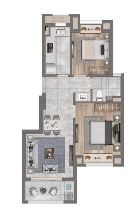 建面约74㎡两房两厅一卫