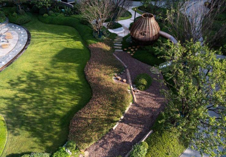 敬畏土地,根植自然,天府九里保留原始台地地势,打造天然台地立体景观,以约2.6万㎡摩登东方园林、约15%的建筑密度,让绵延绿意,成为生活的自然底色。