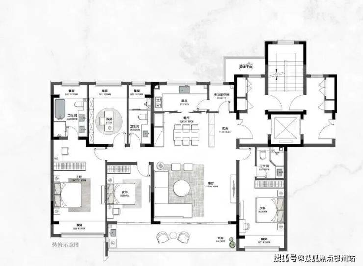 这个四室两厅三卫户型,堪称"现代家族共生艺术的典范"。
