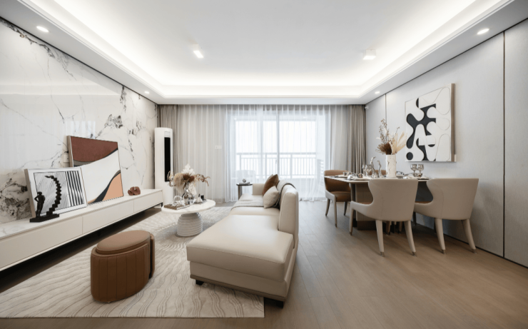 社区景观设计以自然真趣、闲静可得的林居感受为设计主旨,意在打造一个禅意、自然、雅致的品质艺术居住区。