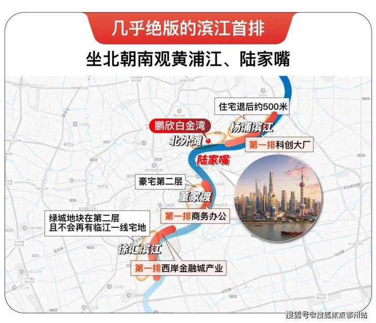 而鹏欣白金湾则是北外滩极少有的在东大名路南侧的住宅,真正绝版滨江首排、一线江景。北外滩之后不会再有这样的房子,也意味坐北朝南一线观陆家嘴的房源难有增量!