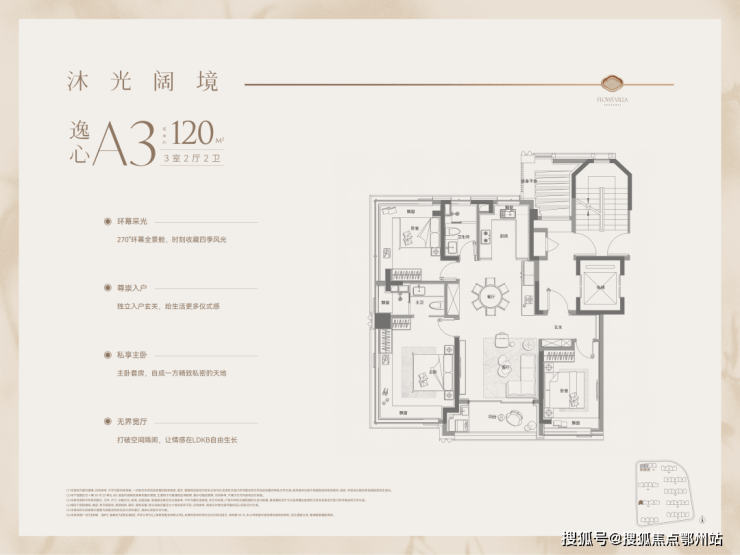 除了约145㎡4房,首开还有建面约120㎡三房高层户型。