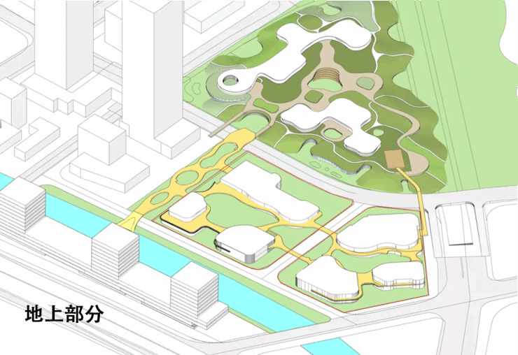 整个项目将实现 地下空间、地上空间、空中走廊“三首层” 的空间格局,打造互联互通、高度共享、高效舒适的未来之城。