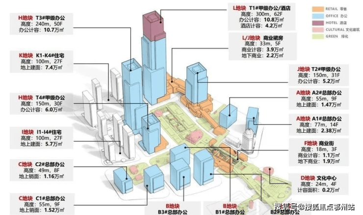 复合业态:约46万方超高层企业总部办公楼,约17万方大型商业中心,约4.2万方丽思卡尔顿酒店,约12万方高端住宅,