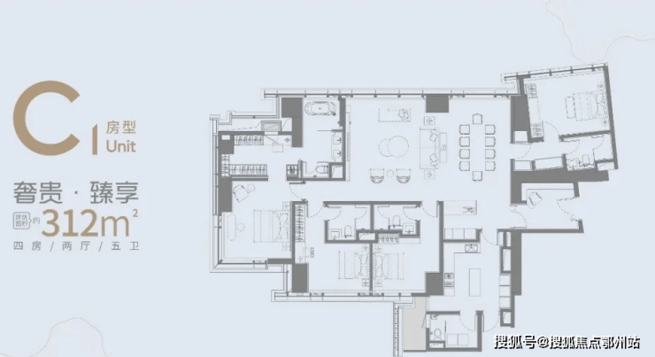 C1户型 建面约312㎡四房两厅五卫