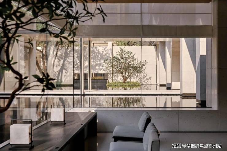 大曲线流行一时,它却独爱横平竖直,灵动弧线只隐现于粼粼水波的反射;五彩斑斓的奢石大行其道,它却固守一色素净,绚丽光彩只在均釉陶砖的表面流转,随天光变幻。