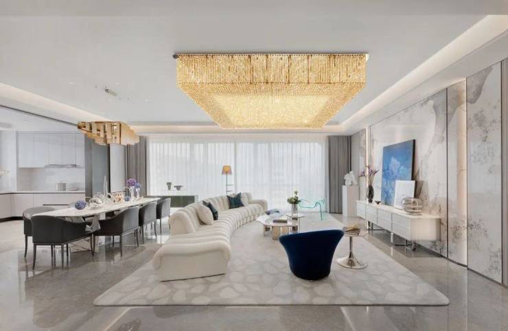 整体设计风格采用现代轻奢风格,营造了一个独具艺术气息的美学空间。每一件家具与配饰都充满灵动和趣味性,彰显房子主人的高雅品味。