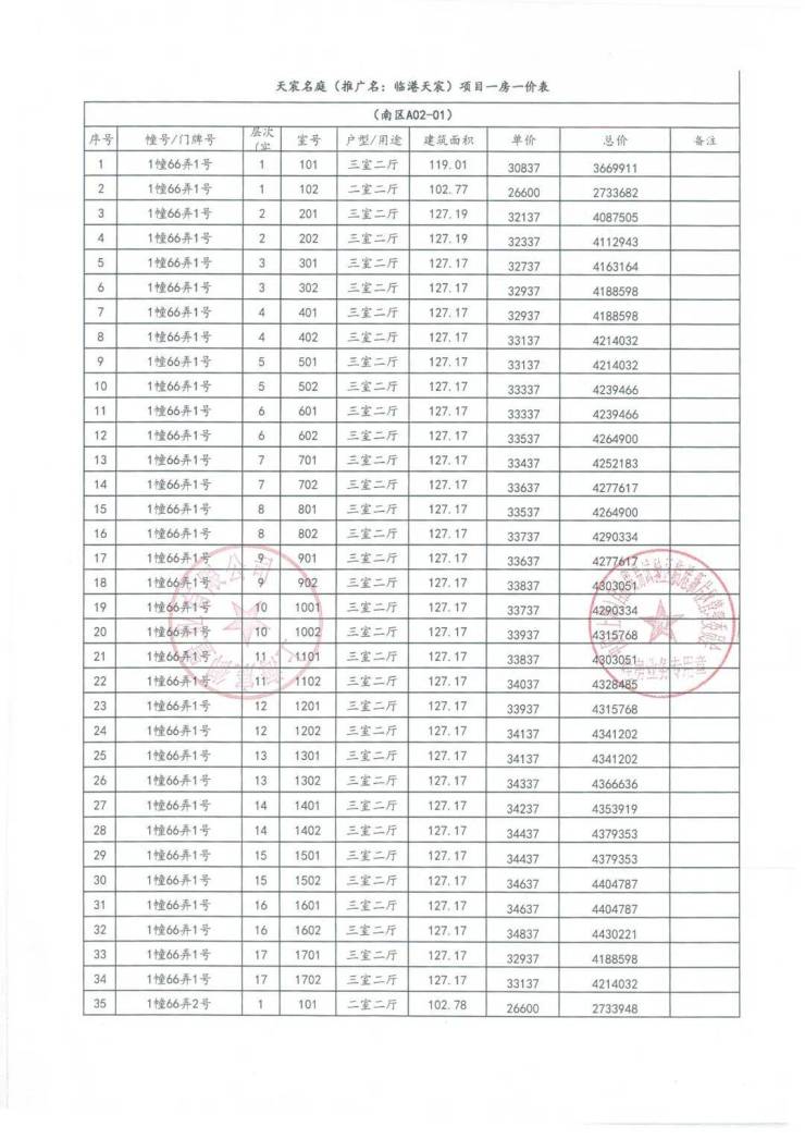 一房一价表
