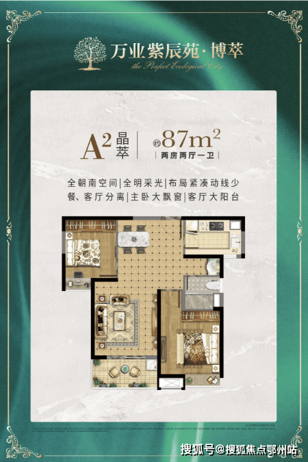 A2户型 87㎡两房两厅一卫 中间套