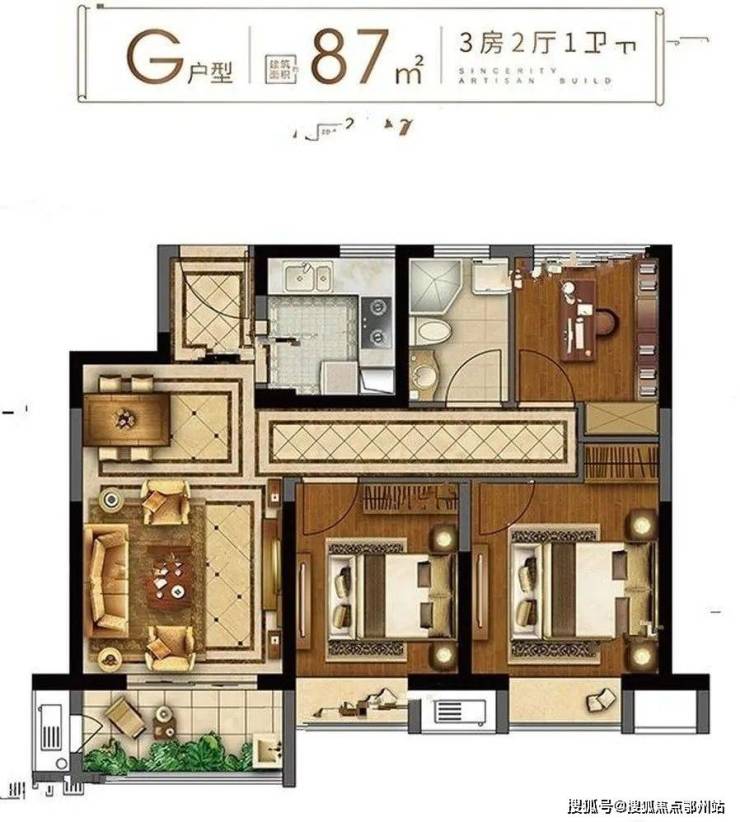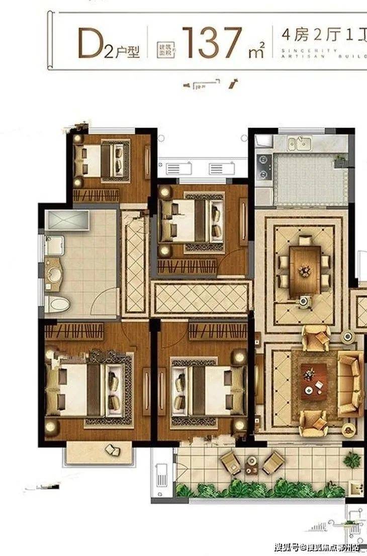 项目的 双开加宽大阳台以及主卧的飘窗设计比较有看点,单独的工作间也能满足个人需求 ,整体来看十分精致。