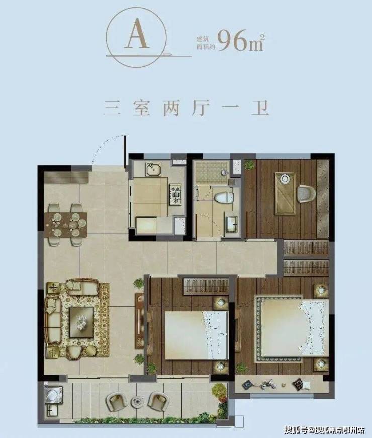 项目设计了建筑面积约96㎡的小三房、约124㎡的大三居以及约143㎡的洋房四室