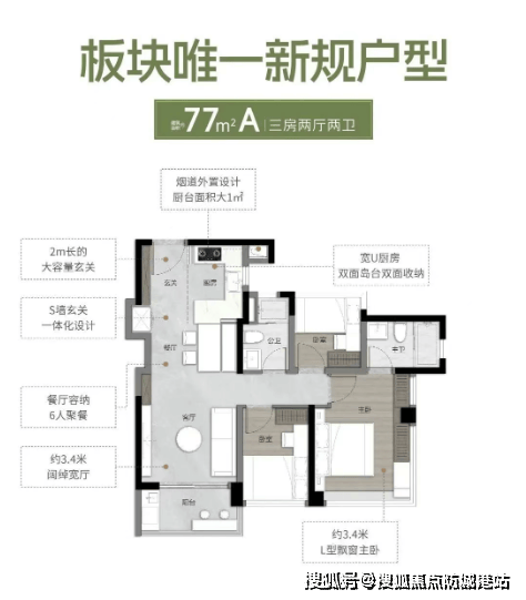 万科·檐屿城主推建面约77至135平方米的三至四房户型,实用率超过120%,部分户型甚至高达138%。通过优化空间布局,最大限度地提升了居住空间的实际利用率。例如,部分户型采用了零飘窗设计和大阳台开间,增加了室内的有效使用面积;同时,客厅、餐厅、厨房、阳台一体化的设计增强了家庭成员之间的互动空间,提升了居住体验。多种变异户型满足不同家庭的需求,每个细节都体现了设计师的匠心独运。